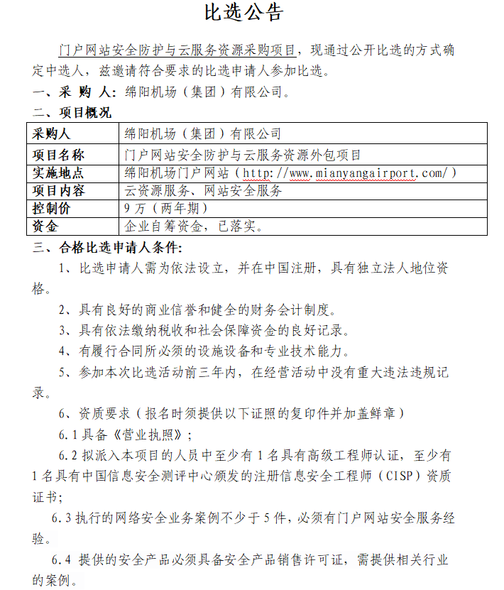 門(mén)戶網(wǎng)站安全防護(hù)與云服務(wù)資源項(xiàng)目采購(gòu)(第二次)