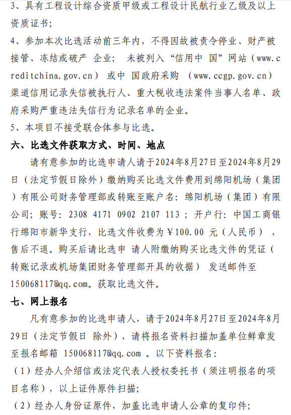 綿陽機(jī)場 T1、T2 航站樓連接通道改造項(xiàng)目設(shè)計單位(第二次)比選公告